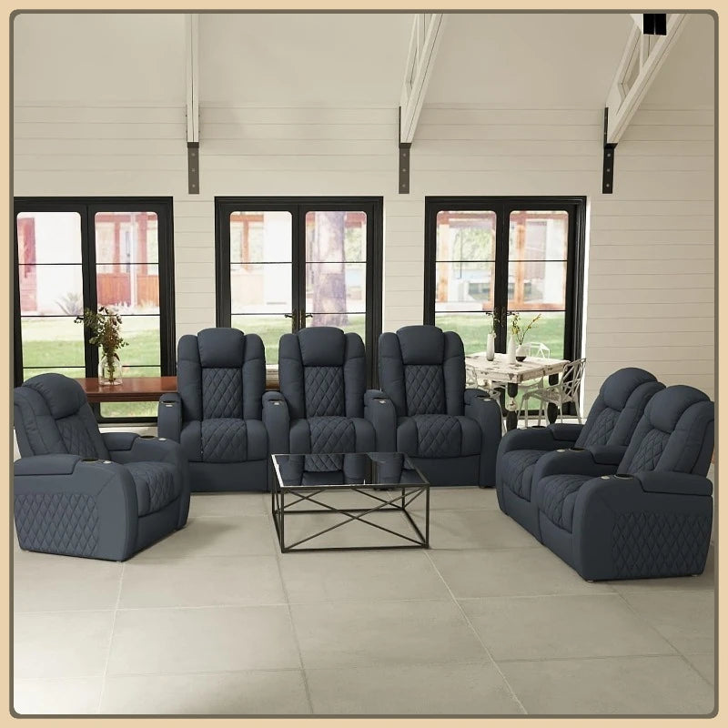 MINGDIBAO Leather Sectional Sofa - USB, Bluetooth & Adjustable Headrests