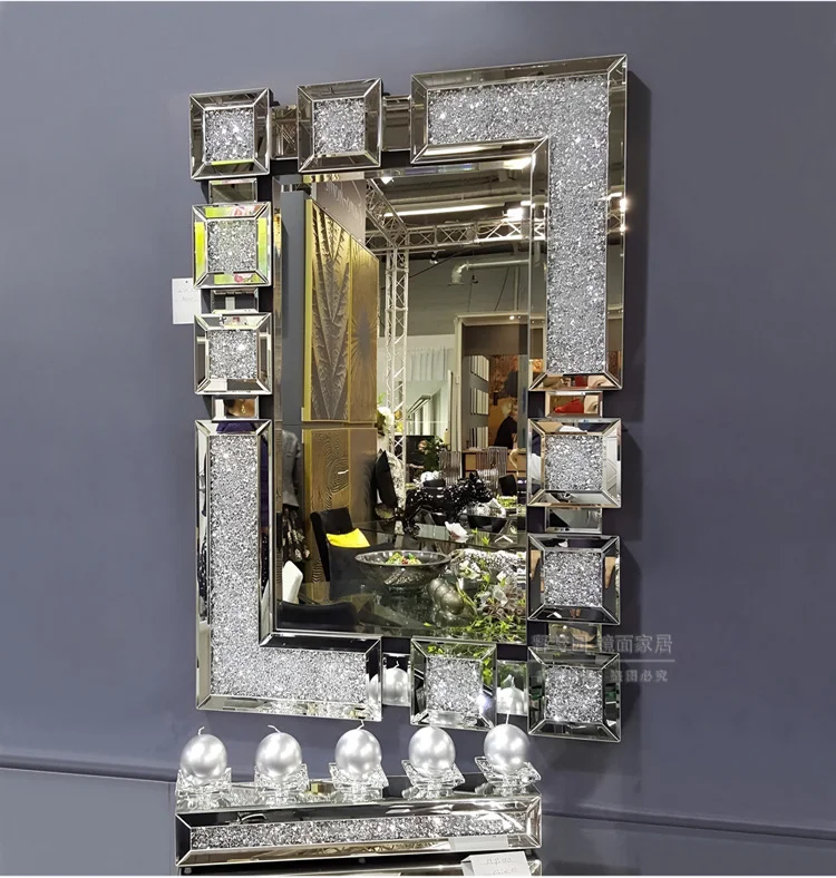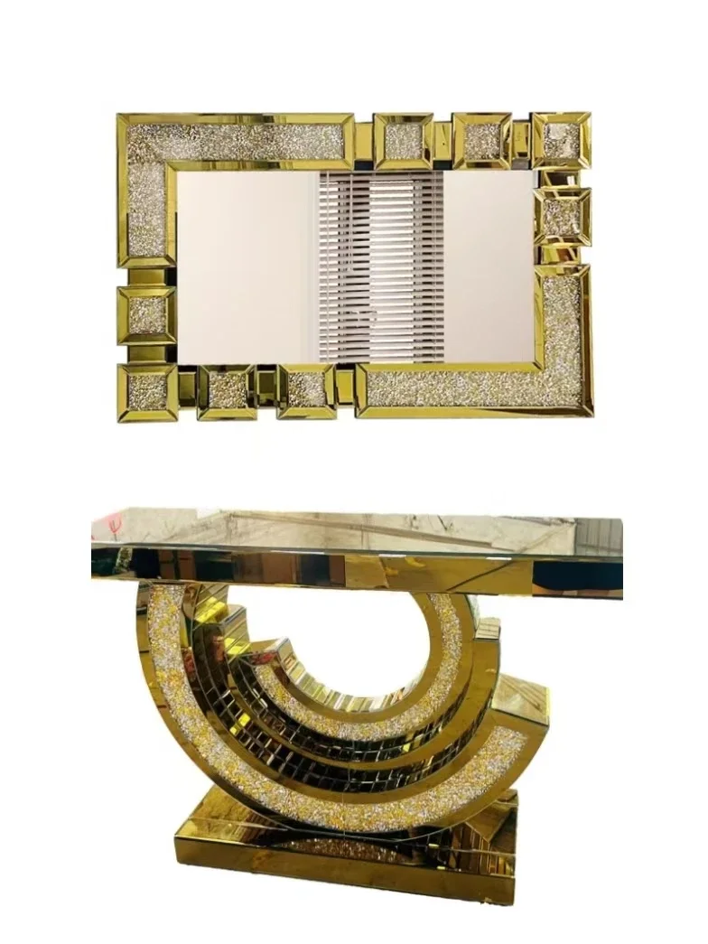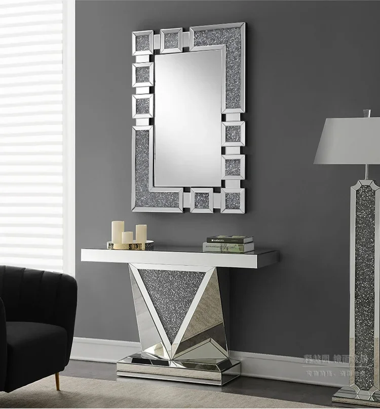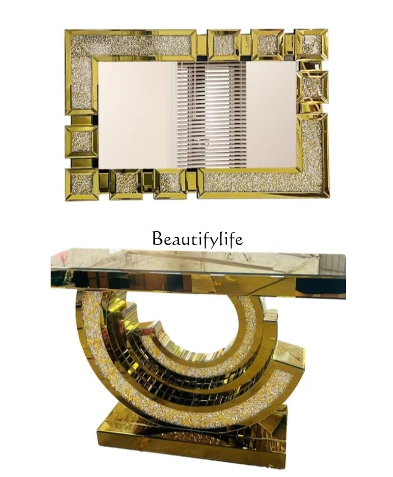 Luxury Crystal Diamond Entrance Console Table With Mirror Elegant Decor For Living Room Entryway