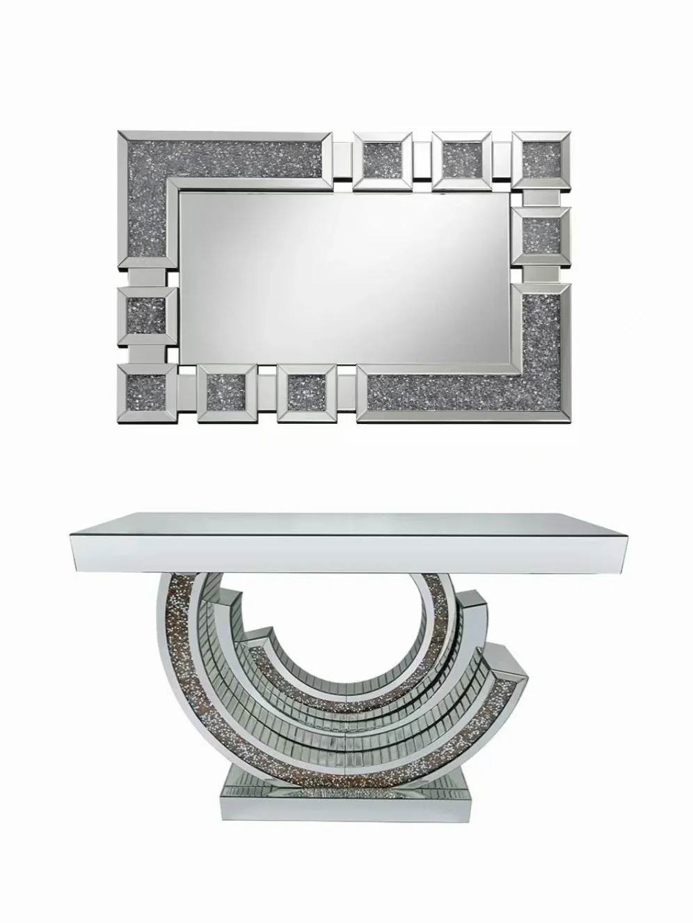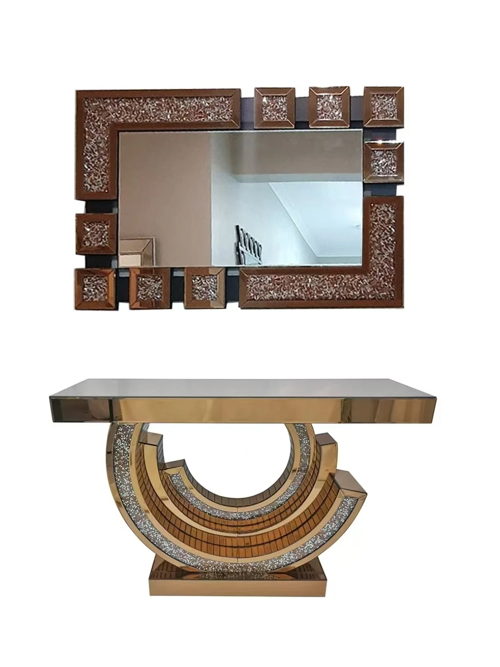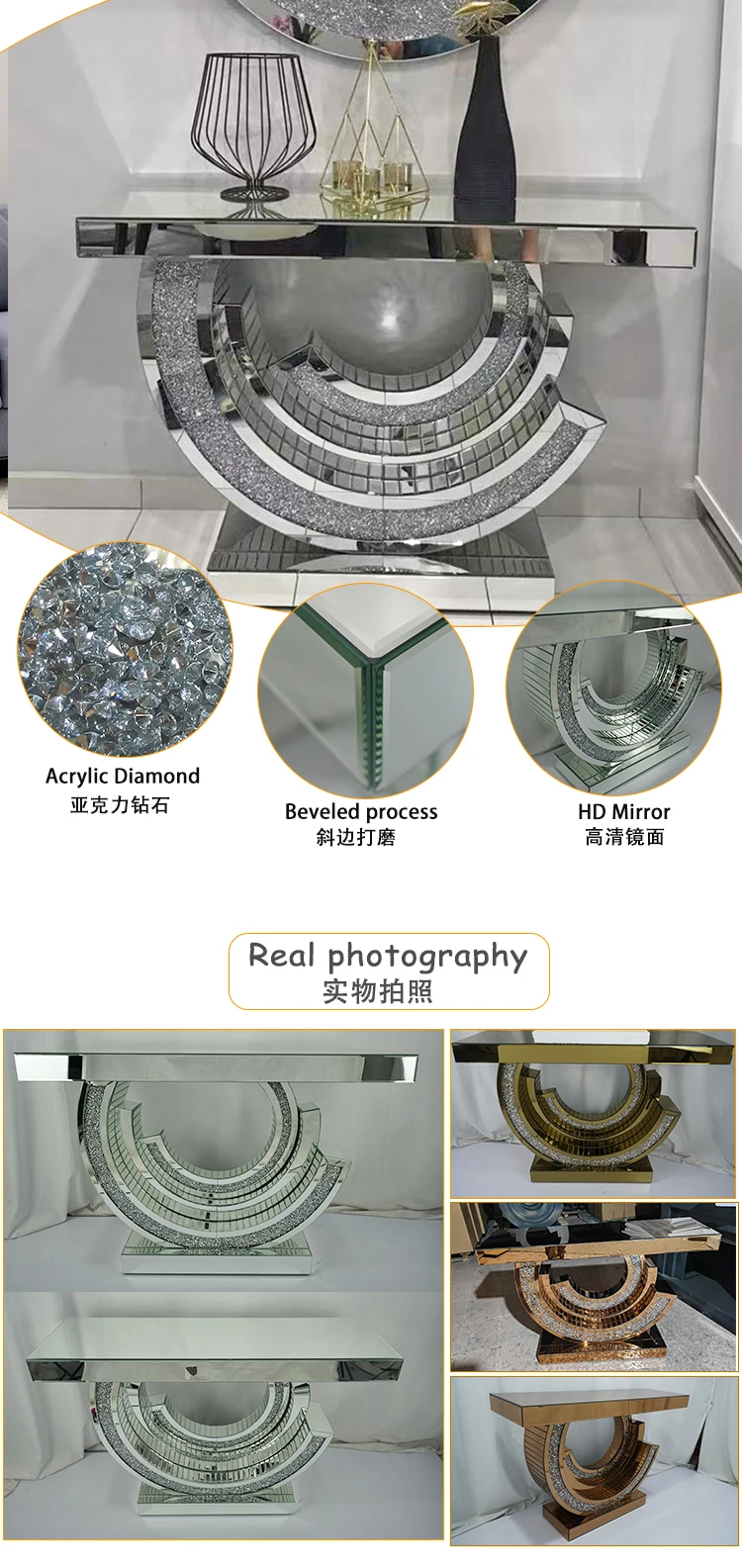 Luxury Crystal Diamond Entrance Console Table With Mirror Elegant Decor For Living Room Entryway