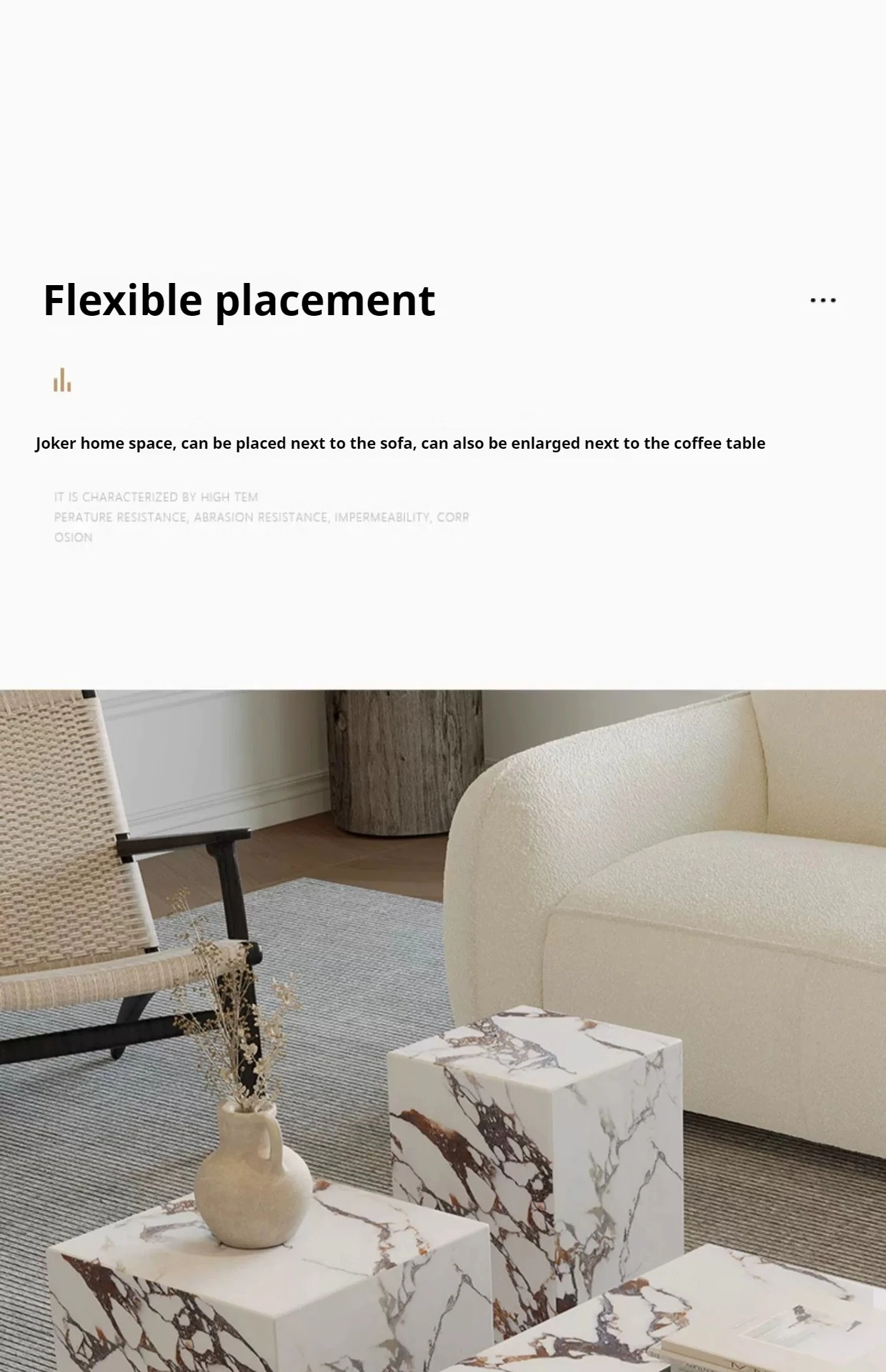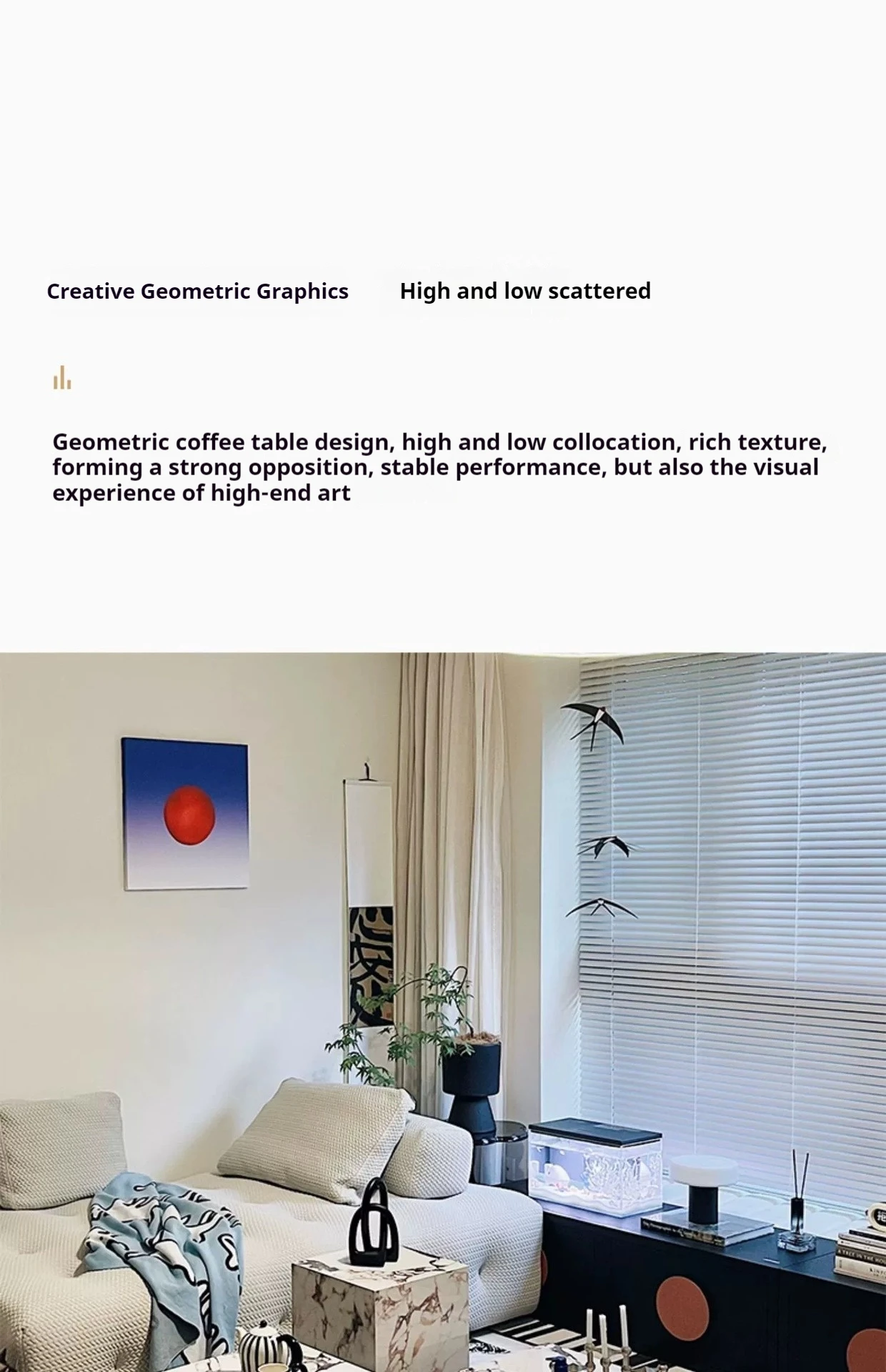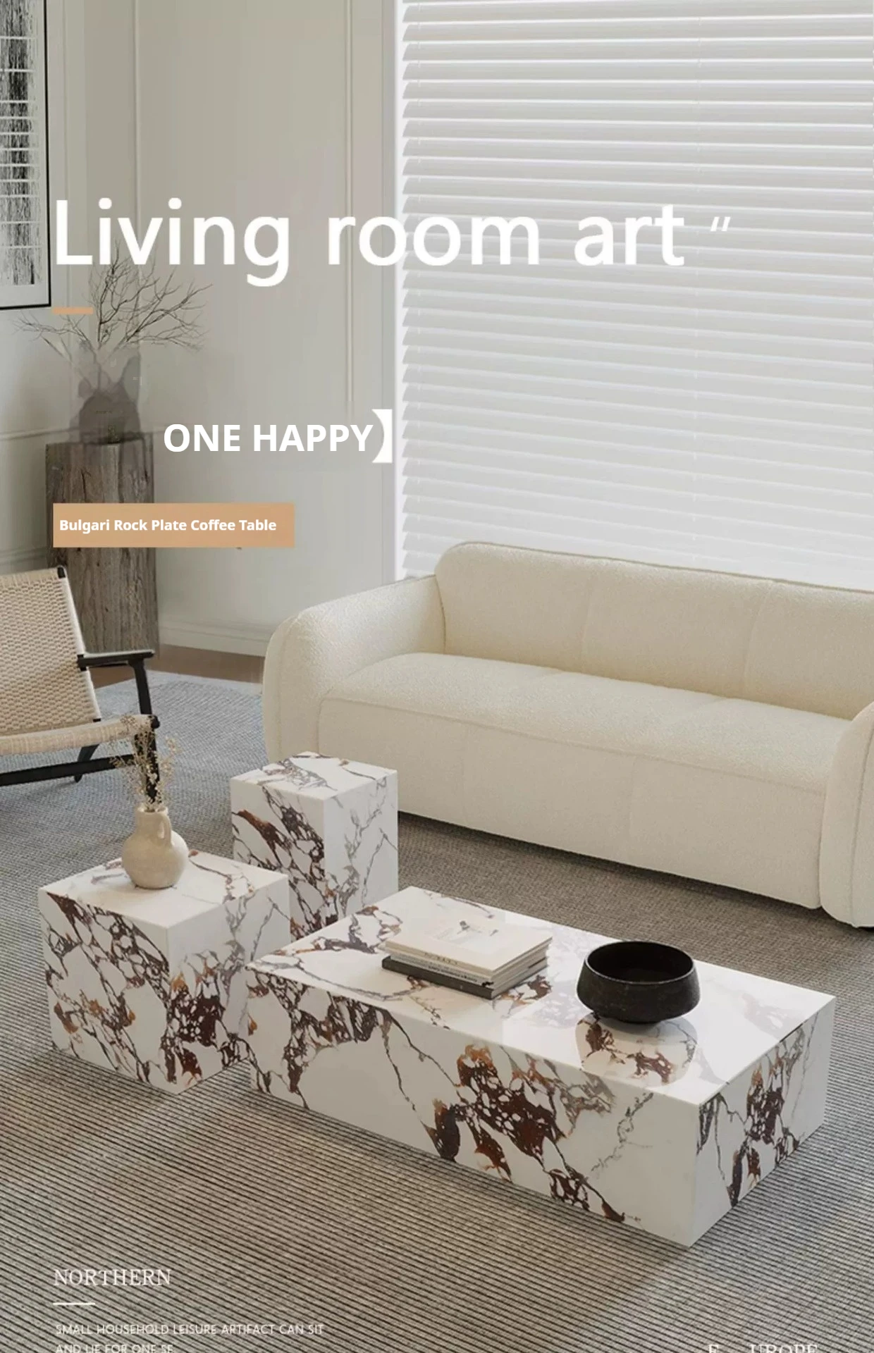 Luxury Stone Coffee Table, Nordic French Retro Design, Compact Corner Table Set for Small Space Living Room, High-End Side Table