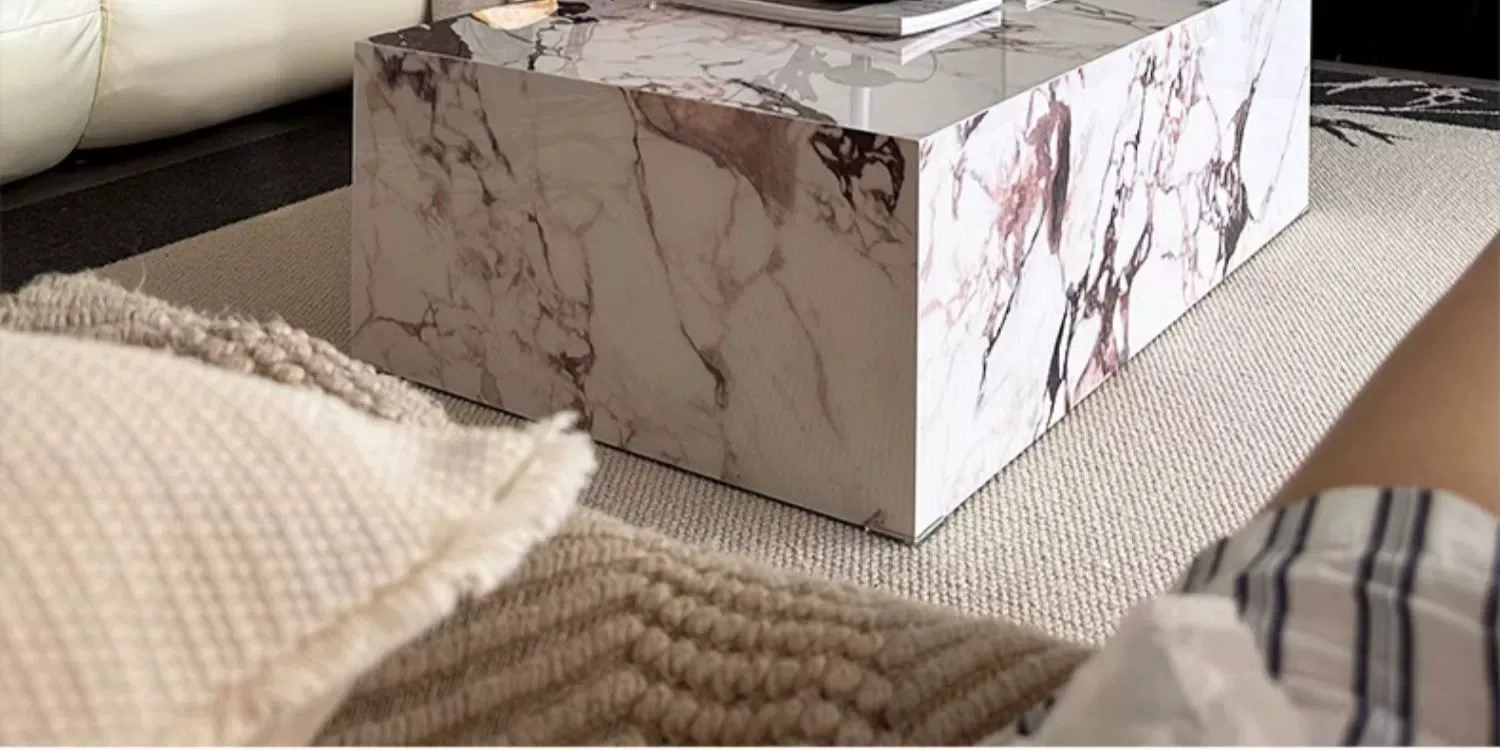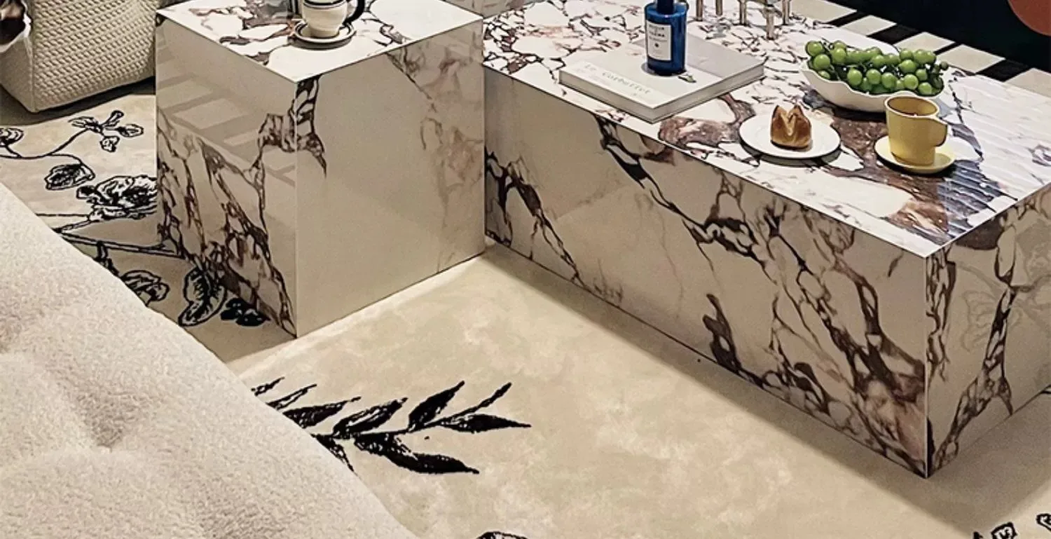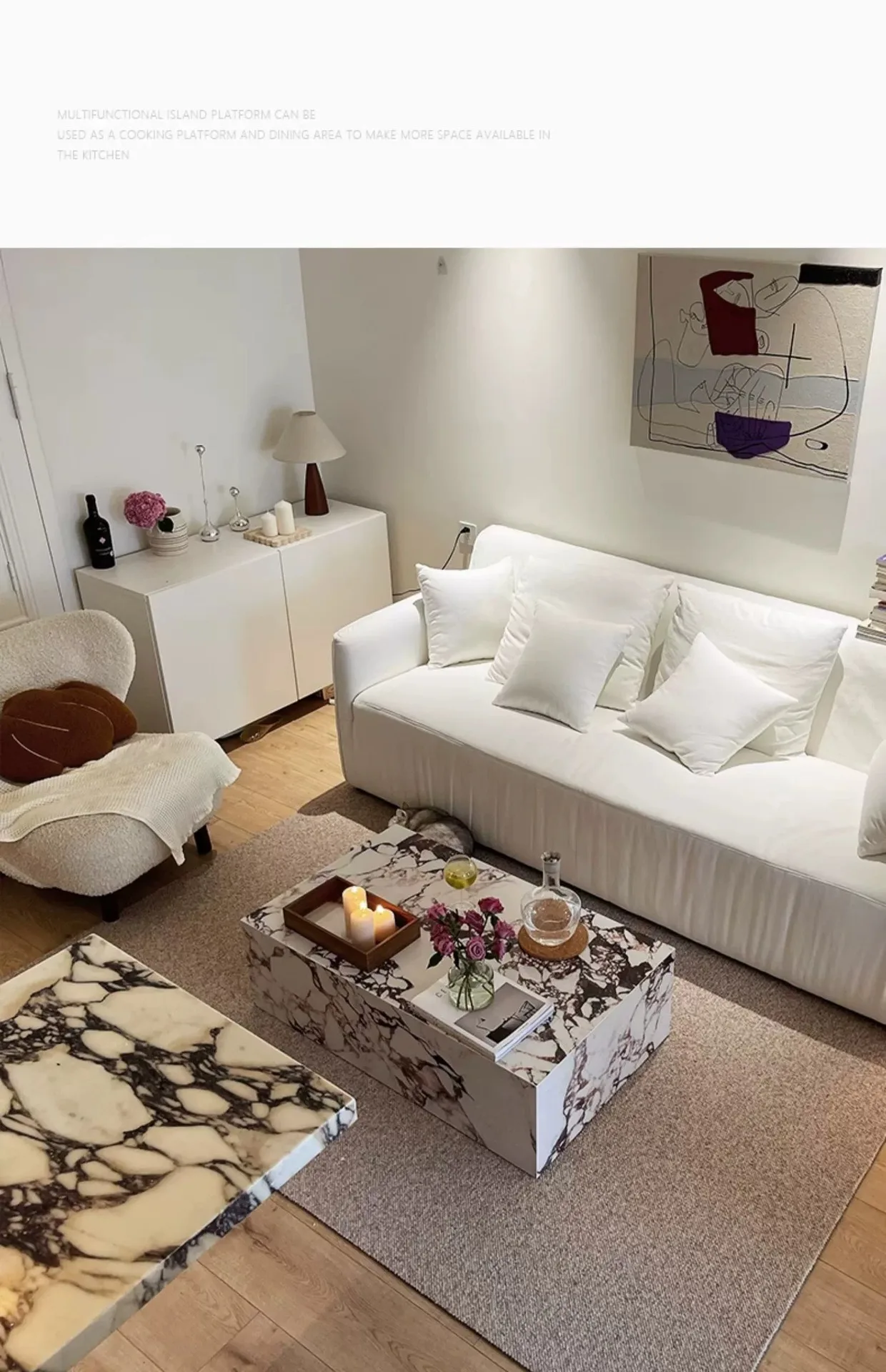Luxury Stone Coffee Table, Nordic French Retro Design, Compact Corner Table Set for Small Space Living Room, High-End Side Table