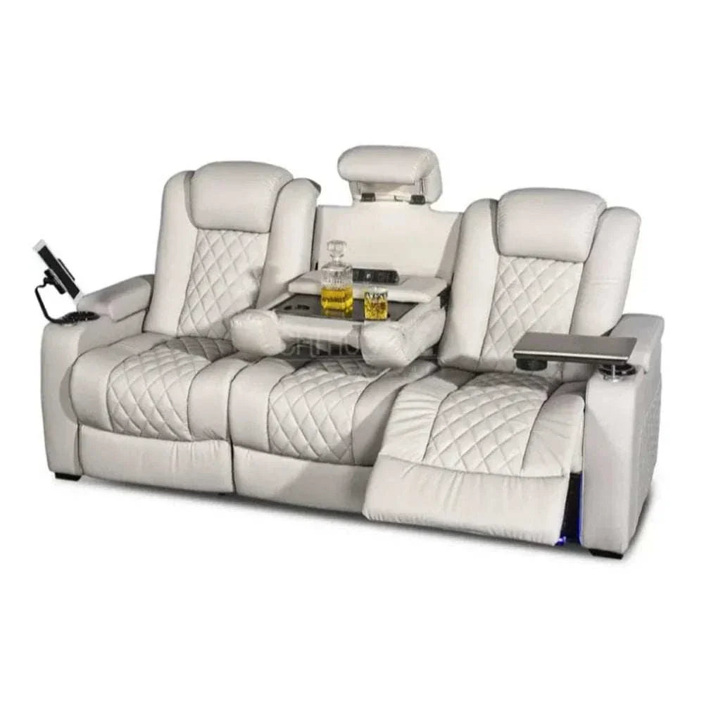 Elevate your living space with the ultimate in comfort and innovation in the Luxury Dual Motors Power Reclining Sofa. Each seat features independent dual motor reclining, allowing personalized adjustments for both headrest and footrest positions.