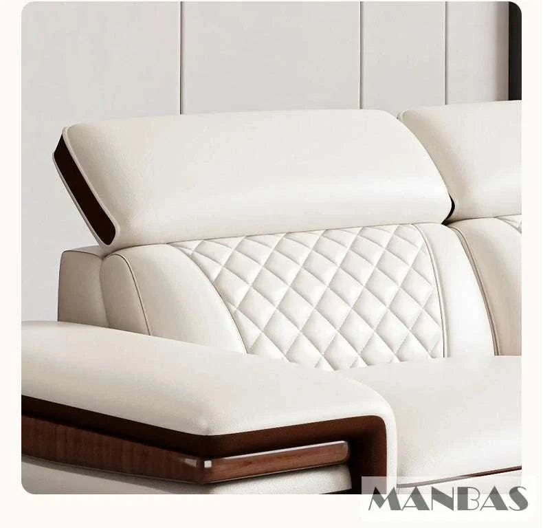 Premium Italian genuine leather sofa set with adjustable headrests and modern design