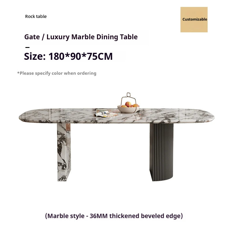 Elevate your dining space with this French‑inspired rectangular marble table, blending a soft cream aesthetic with refined natural stone. Its sculpted edges and designer presence bring villa‑level sophistication to modern interiors, creating a timeless, artful centerpiece.